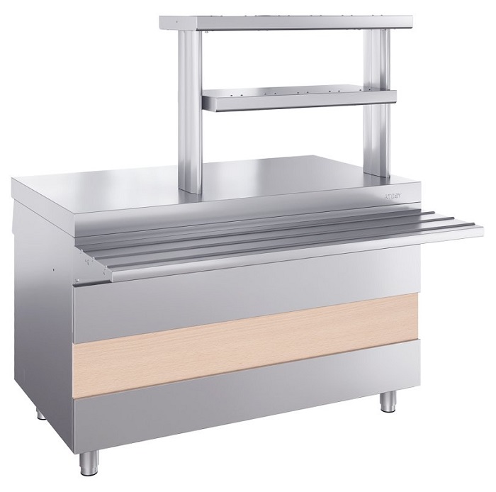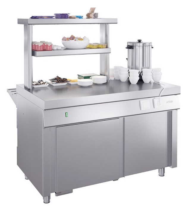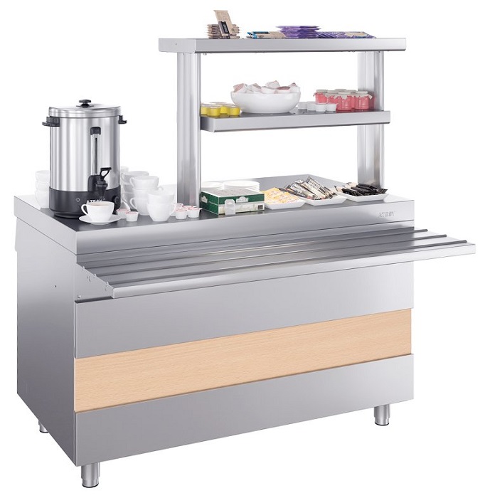 Прилавок для горячих напитков Атеси Ривьера предназначен для выкладки продуктов и напитков, не требующих подогрева или охлаждения, а также для установки дополнительного оборудования и приспособлений.