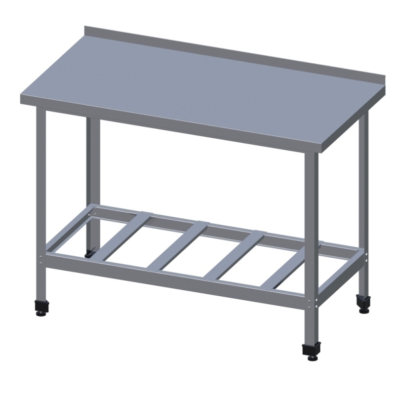 Стол производственный предназначен для обработки продуктов питания на предприятиях пищевой промышленности и общественного питания, на кухнях супер- и гипермаркетов, отелей, санаториев и галерей. Ножки стола регулируются по высоте.