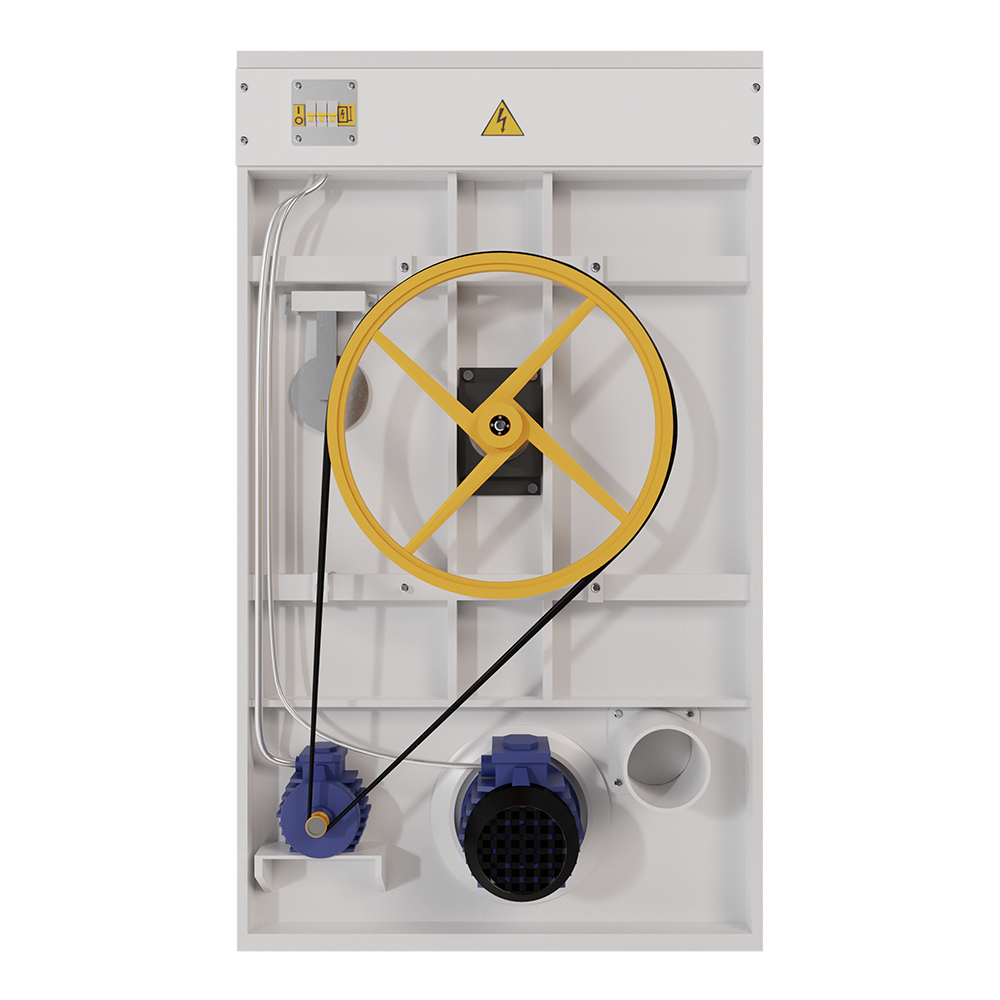Сушильная машина ВС-11 оснащена защитными блокировками, автоматической диагностикой ошибок, аварийной сигнализацией. Имеет большой ворсовый фильтр для улавливания очесов и встроенный вентилятор. Машина подключается к общей системе вытяжной вентиляции прачечной