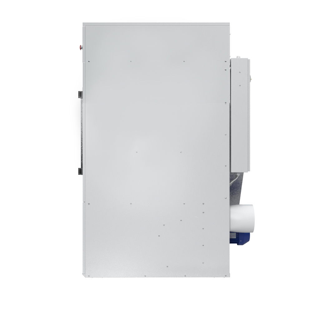 Сушильная машина ВС-30 оснащена защитными блокировками, автоматической диагностикой ошибок, аварийной сигнализацией. Имеет большой ворсовый фильтр для улавливания очесов и встроенный вентилятор. Машина подключается к общей системе вытяжной вентиляции прачечной