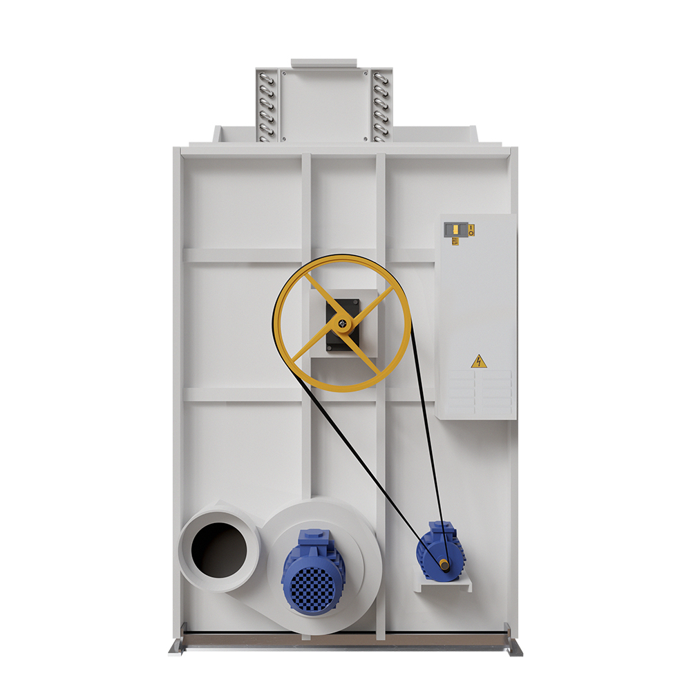 Сушильная машина ВС-75 оснащена защитными блокировками, автоматической диагностикой ошибок, аварийной сигнализацией. Имеет большой ворсовый фильтр для улавливания очесов и встроенный вентилятор. Машина подключается к общей системе вытяжной вентиляции прачечной