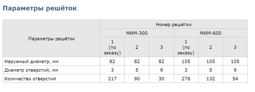 Практическая производительность мясорубки зависит от скорости подачи оператором порезанного кусочками продукта к шнеку, сортности перерабатываемого мяса, качества заточки инструмента. Для получения фарша разной степени измельчения мясорубка снабжена набором ножевых решеток с отверстиями различных размеров. Решетки вставляются в корпус мясорубки и удерживаются от проворачивания шпонкой.