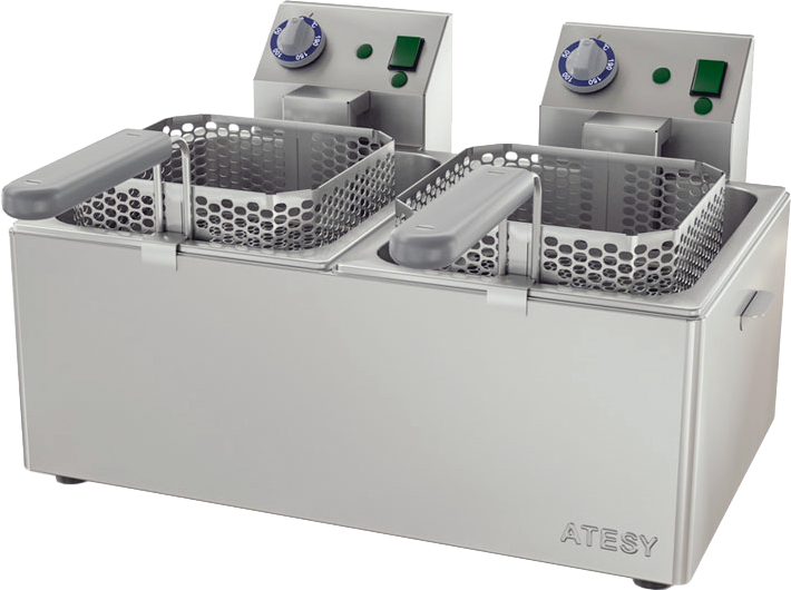 Фритюрница Atesy Панда Евро-2х1/2 выполнена из нержавеющей стали. Фритюрная ванна представляет собой цельнотянутую нержавеющую гастроемкость GN1/2. Блок управления включает в себя электротерморегулятор и трубчатый электронагреватель (ТЭН), выполненный из пищевой нержавеющей стали. Терморегулятор способен поддерживать температуру фритюра в диапазоне от +50 до +190 °C. Садок имеет удобную пластмассовую ручку, которая предотвращает его выскальзывание из рук во время работы.