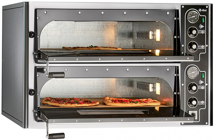 Печь электрическая для пиццы Abat ПЭП-4х2 (двухкамерная) предназначена для выпечки пиццы и хлебобулочных изделий, требующих высокой температуры приготовления. В электрической печи ПЭП-4 х2 применяется природный камень - фельзит. Высокая огнеупорность этого камня позволяет использовать его в печах для выпечки. При нагреве правильно распределяет и поддерживает заданную температуру. Благодаря ей общая температура внутри духовки выравнивается по всей ширине камеры и остается неизменной на протяжении всего процесса готовки, даже при открывании дверцы камеры. Не меньшее значение играет и пористость фельзита. Этот природный камень способствует поглощению влажности теста, а затем равномерному ее освобождению, что особенно важно при выпекании хлебобулочных изделий на поду. Камень, быстро прогревая тестовую заготовку, в первые минуты выпекания дает возможность дрожжам поднять хлеб перед тем, как образуется корка. Две камеры. Каждая камера вмещает 4 заготовки для пиццы диаметром 350 мм и имеет раздельную регулировку мощности верхних и нижних ТЭНов. Рабочий диапазон температуры духовки +20...+450 С. Установленный аварийный термовыключатель предохраняет шкаф от перегрева свыше +500 С. Облицовка выполнена из окрашенного металла, дверка и рамка камеры из эмалированного, а жарочный шкаф из оцинкованного листа толщиной 1,5 мм. Поды из жаропрочного камня толщиной 15 мм. Для того, чтобы процесс выпечки был максимально комфортен и нагляден, в каждой рабочей камере есть внутренняя подсветка, дверки укомплектованы жаропрочным смотровым окном. Приобретение двухкамерной печи ПЭП-4х2 является более доступным решением, нежели установка друг на друга двух однокамерных печей ПЭП-4, а также позволяет увеличить производительность заведения, при этом экономя рабочее пространство кухни. Также печь ПЭП-4х2 может быть установлена на подставку ПП-4. По своему качеству печь подобного типа уступает только традиционным дровяным печам и отлично подходит для тех заведений общественного питания, владельцы которых хотят приготовить пиццу с аутентичным вкусом, но при этом не желают тратить деньги и время на покупку и уход за дровяной печью.